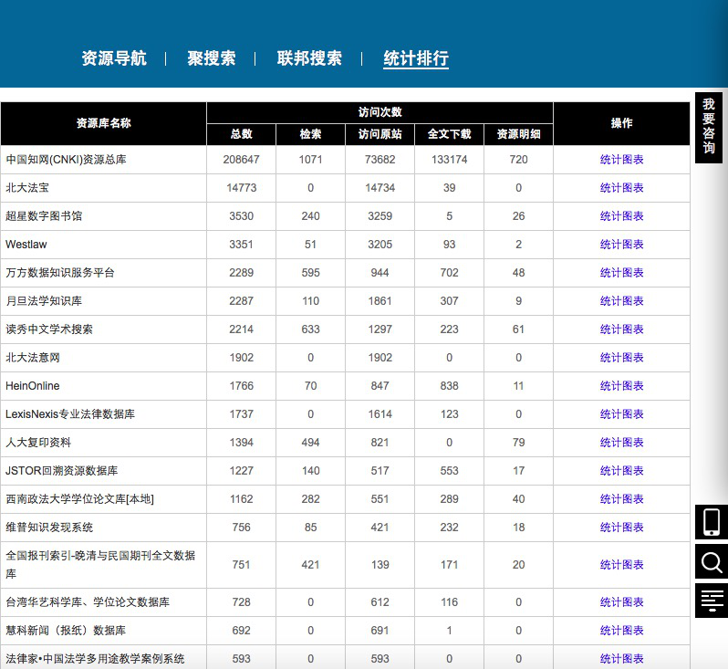 包括總體的訪(fǎng)問(wèn)量情況,登錄過(guò)多少次,每一次登錄的時(shí)間、使用設備、IP地址,每次登錄訪(fǎng)問(wèn)的資源庫情況,每次下載全文的文章,瀏覽電子資源庫的情況,檢索的次數和檢索詞等等。需要了解用戶(hù)行為時(shí),選擇相應的日期即可。